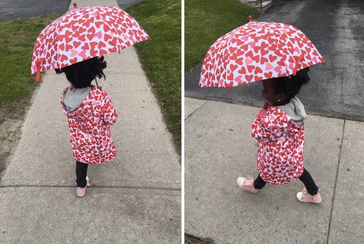 Zuri-Sanaa doesn't play when it comes to her outfits. Even though the weather is getting warmer in Toronto, Zuri-Sanaa insists on wearing her matching jacket and umbrella.
